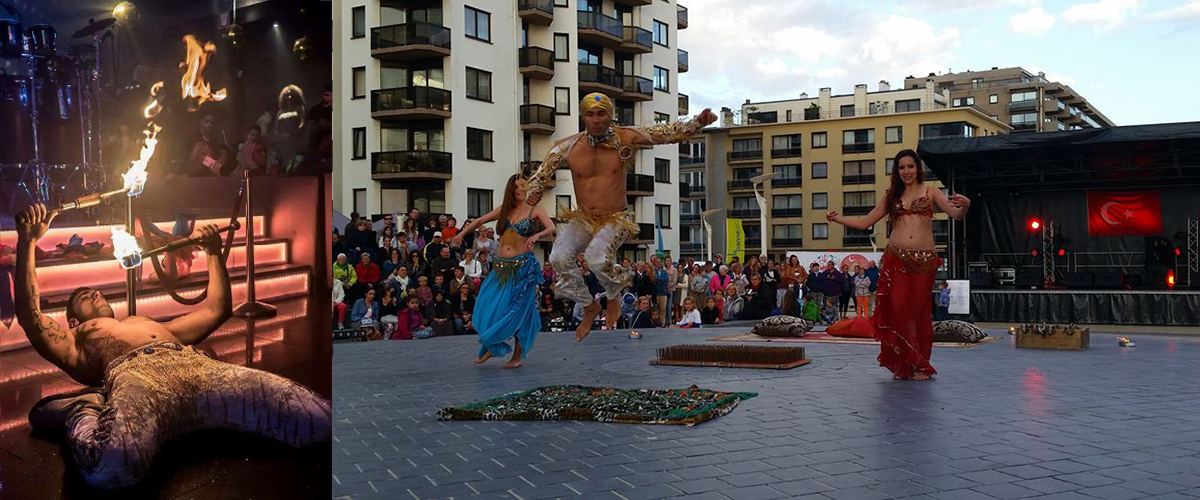 (klassieke buikdans, IsisWings buikdans, dansen op gebroken glas, vuurspuwen)